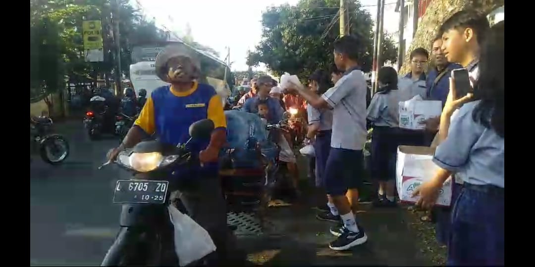 Perbedaan keyakinan bukanlah sebuah penghalang dalam menjalin kebersamaan antar umat beragama. Hal itulah yang ditunjukkan oleh para siswa-siswi OSIS SMP Kristen Elia Surabaya saat membagikan ratusan takjil gratis bagi pengendara yang melintas di sekitar jalan Darmo Permai Utara samping Gereja Alfa Omega Surabaya, Rabu (03/03/2024).