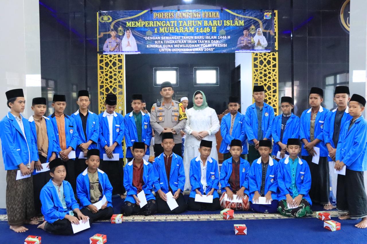 Kegiatan tersebut di hadiri oleh Kapolres Lampung Utara AKBP Teddy Rachesna, S.H., S.I.K., M.Si., Pejabat Utama, personel dan Bhayangkari Polres Lampung Utara serta santri Ponpes Husnul Amal Kotabumi Selatan.
