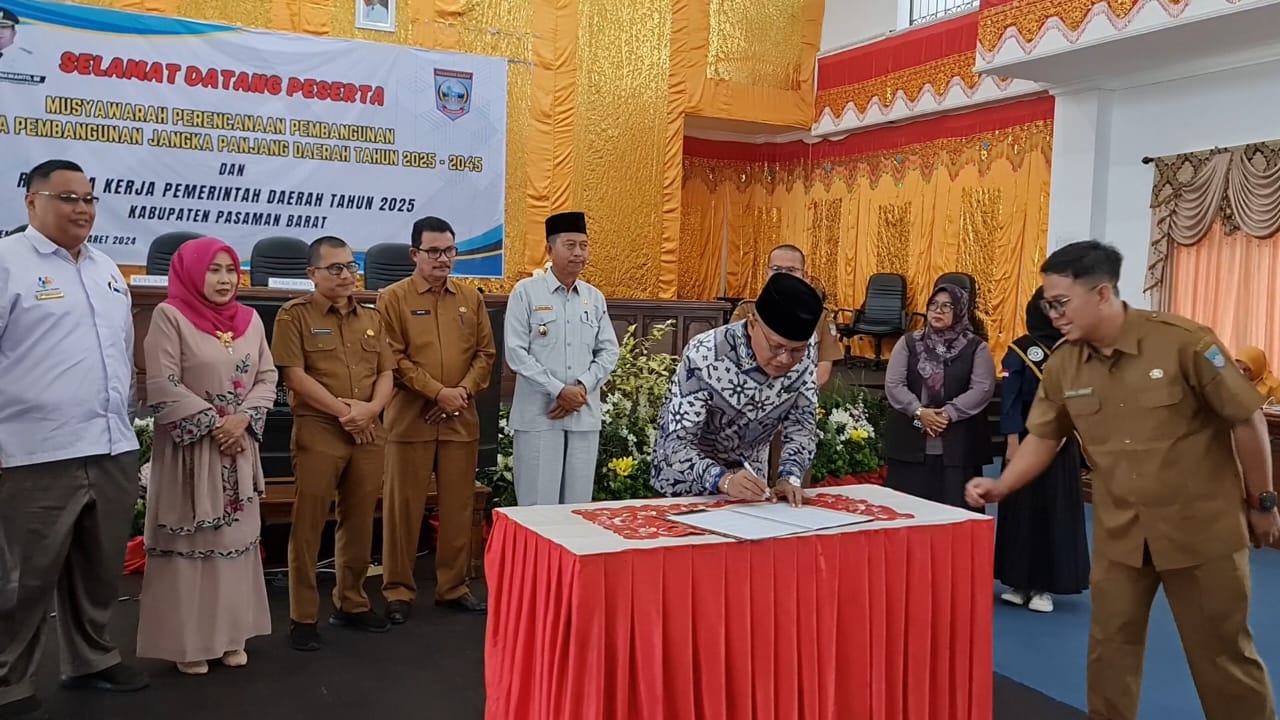 PASAMAN BARAT, Sumbar, Kompas86.com. Ketua DPRD Pasaman Barat H. Erianto hadiri musyawarah perencanaan pembangunan Rencana Pembangunan Jangka Panjang Daerah (RPJPD) Pasaman Barat tahun 2025-2045, di aula kantor bupati setempat, Selasa (26/03).