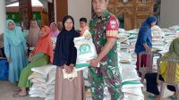Babinsa Ujungpandan Sertu Sujono Dampingi Distribusi Bantuan Beras kepada 261 Warga Penerima