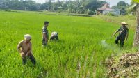 Babinsa Desa Platar Dampingi Petani Lakukan Perawatan Padi dan Penyemprotan Pestisida