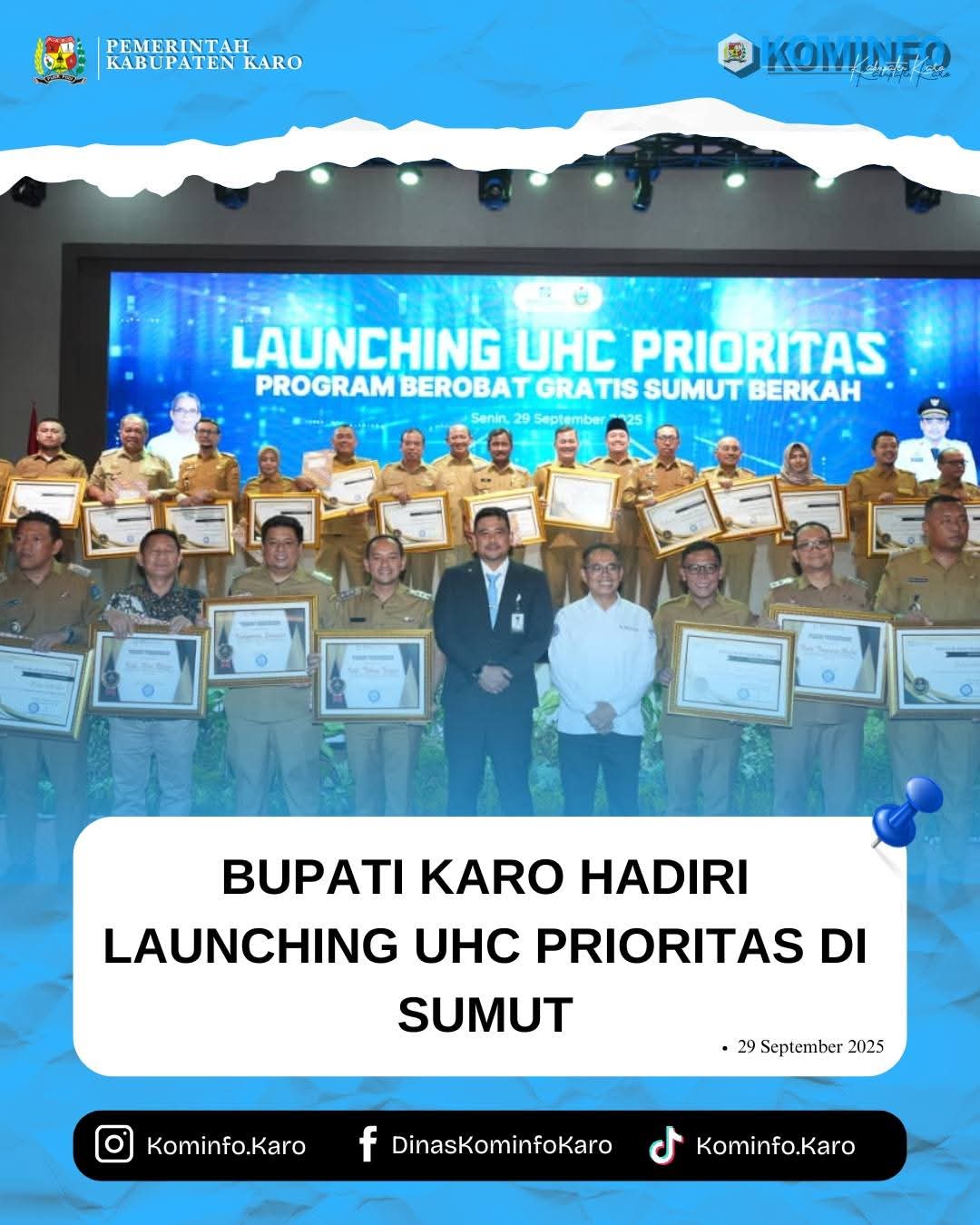 Bupati Karo Hadiri Launching UHC Prioritas di Graha Bhineka Perkasa Jaya Lubuk Pakam