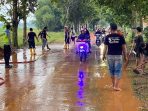Polri Bersama Damkar Dan Warga Bersihkan Tumpahan Tanah Urug Yang Tercecer Di Jalan