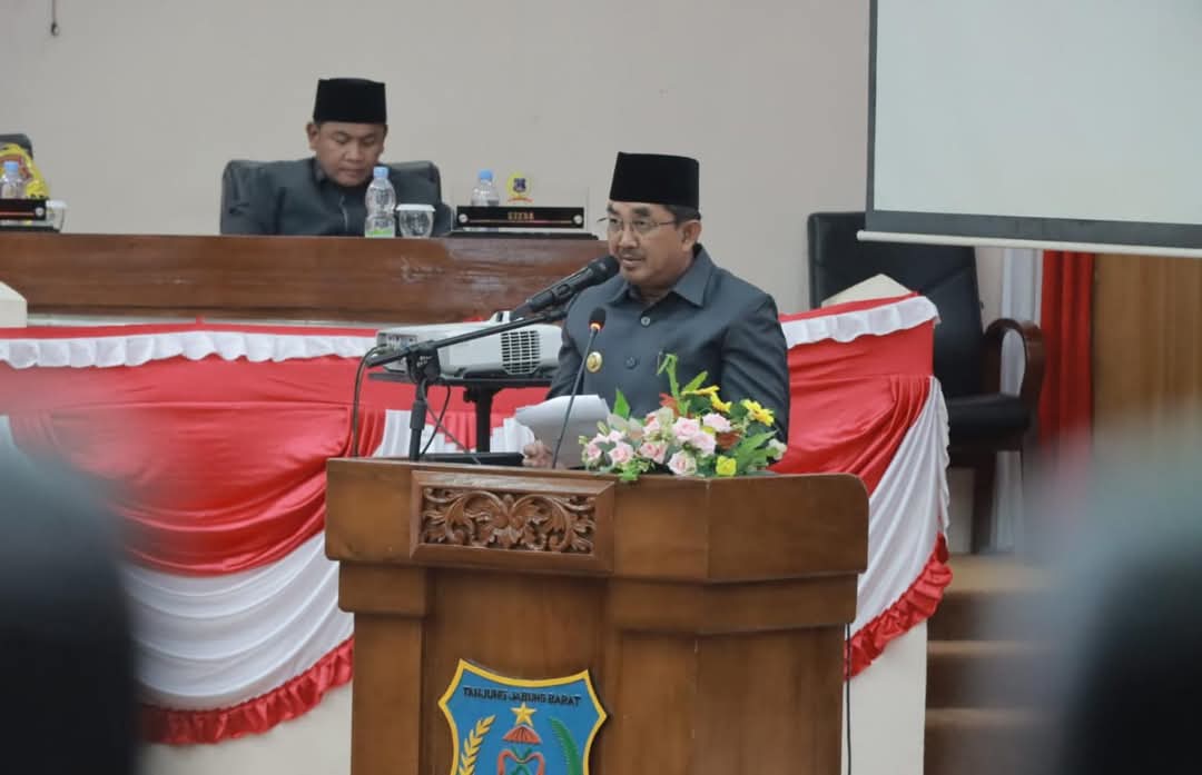 Kuala Tungkal – Bupati Tanjung Jabung Barat, Drs. H. Anwar Sadat, M.Ag, menghadiri Rapat Paripurna Ketiga DPRD Kabupaten Tanjung Jabung Barat dengan agenda penting yang membahas tanggapan Bupati terhadap pemandangan umum fraksi-fraksi DPRD terhadap Laporan Keterangan Pertanggungjawaban (LKPJ) Bupati Tahun Anggaran 2024, serta pembentukan Panitia Khusus DPRD terhadap pembahasan dua Rancangan Peraturan Daerah (Ranperda) Kabupaten Tanjung Jabung Barat dan dua Ranperda inisiatif DPRD Kabupaten Tanjung Jabung Barat. Selasa (8/4).