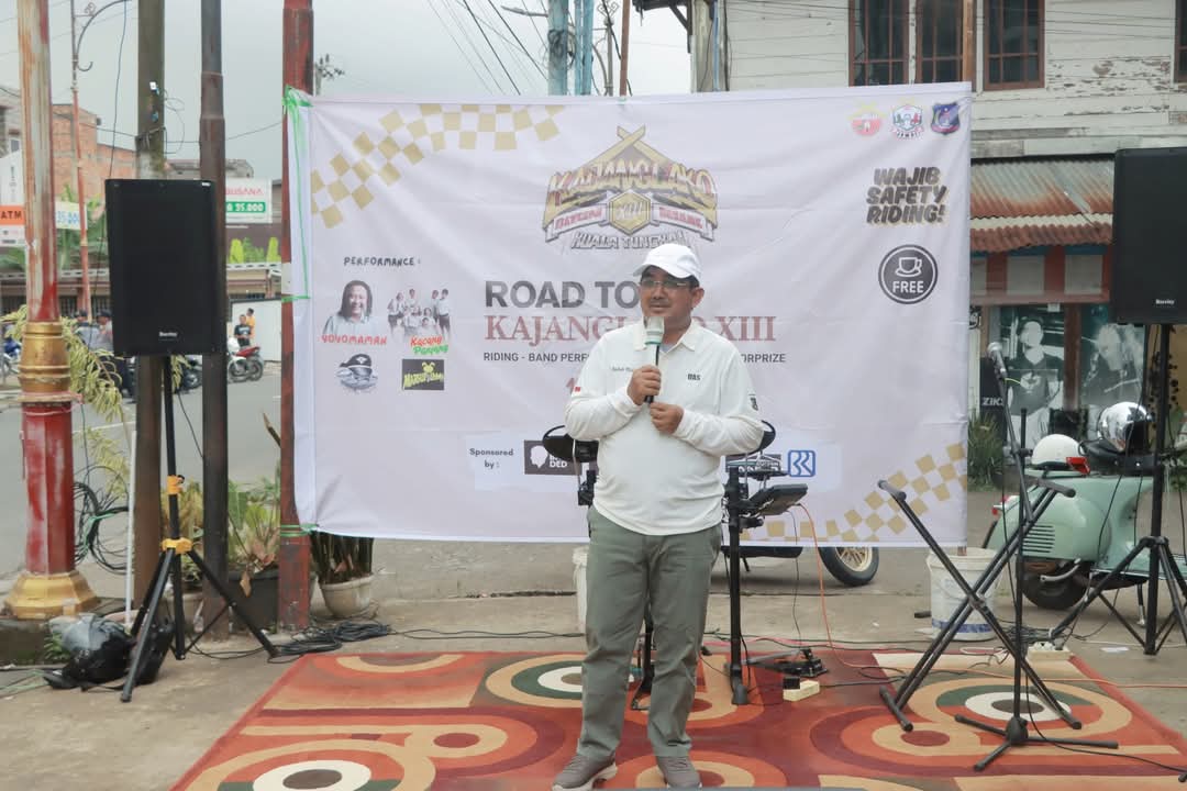 Bupati Tanjung Jabung Barat, Drs. H Anwar Sadat, M. Ag, mengikuti kegiatan Road to Kajanglako XIII “Bevespa Besame” dengan mengendarai Vespa memimpin rombongan keliling Kota Kuala Tungkal bersama komunitas Vespa Tanjab Barat dan Provinsi Jambi, Sabtu (19/04/2025).