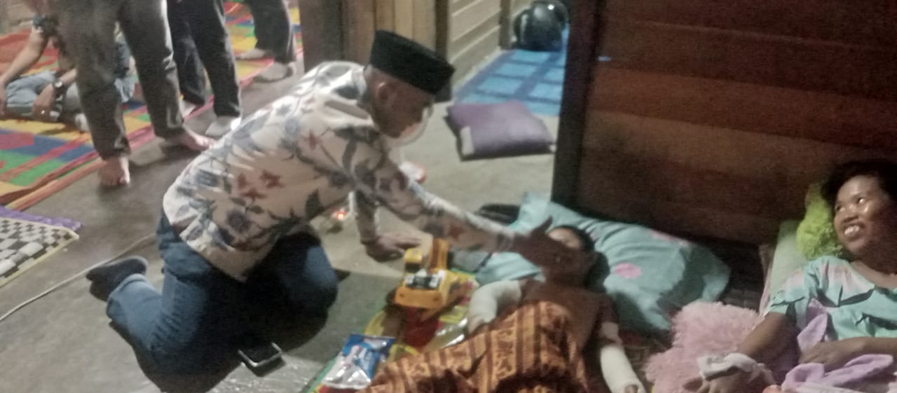 Mendapatkan kabar, satu keluarga menjadi korban kecelakaan di Jalan 10 Unit 1 Kecamatan Rimbo Bujang ,Agus Rubiyanto didampingi Tim Pemenangan Tebo Maju  membesuk korban, Senin (07/10/2024).