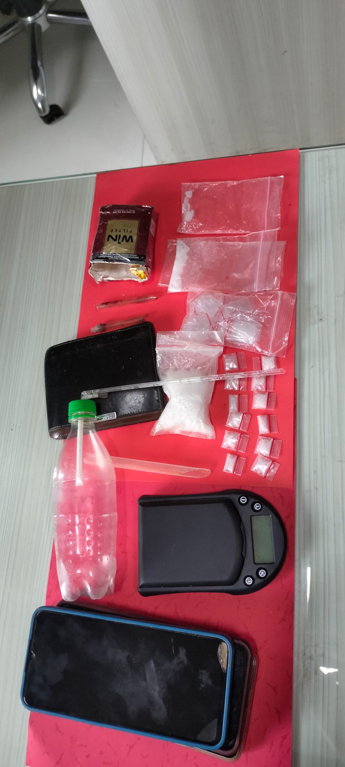 Selain narkotika, petugas juga menyita tiga unit ponsel, satu timbangan digital, dua pipa kaca, satu alat hisap, satu bundel plastik klip, serta dua unit sepeda motor jenis Honda Beat dan Honda Revo.