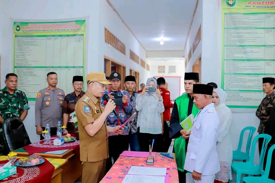 Bengkulu Selatan-Bupati, Gusnan Mulyadi, menghadiri sekaligus melantik Pergantian Antar Waktu (PAW) Kepala Desa Suka Bandung, Kecamatan Air Nipis di Kantor Camat Air Nipis (09/05/25).