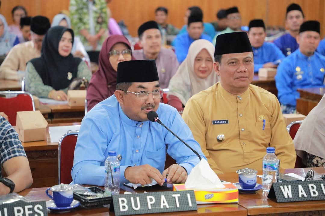 Kegiatan yang berlangsung di Ruang Pola Kantor Bupati tersebut, dihadiri langsung oleh Bupati Drs. H. Anwar Sadat, M.Ag, Wakil Bupati Dr. H. Katamso, SA., SE., ME, perwakilan Polres Tanjung Jabung Barat, perwakilan Kejari, Sekretaris Daerah, Plt. Asisten Pemerintahan dan Kesra, Kepala OPD dan para Camat.