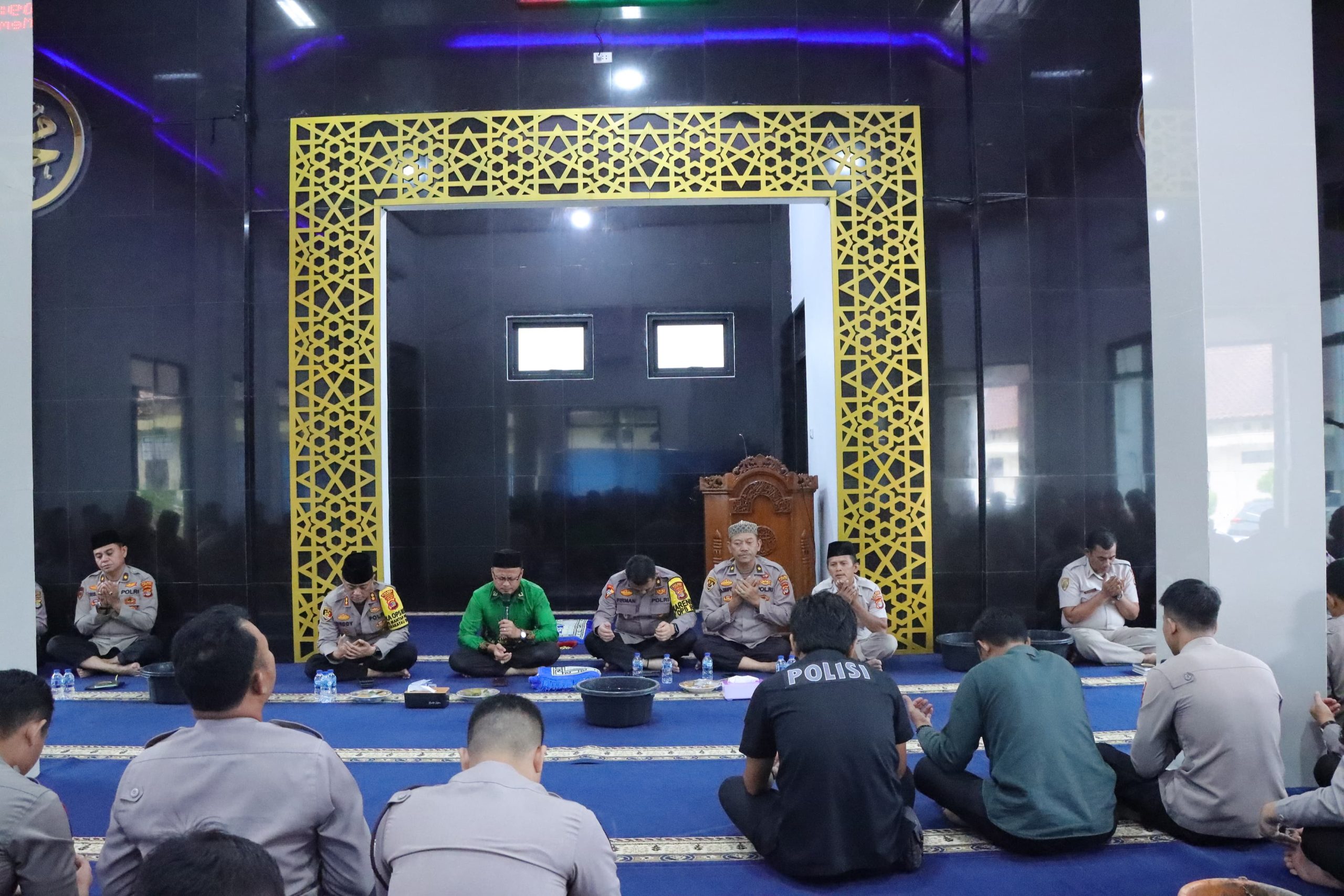 Lampung Utara,Kompas86.Com Guna membentuk karakter anggota yang beriman dan bertanggungjawab, Polres Lampung Utara menggelar pengajian pembinaan rohani dan mental di Masjid Al-Fachri Mapolres setempat, Kamis (9/1/25).