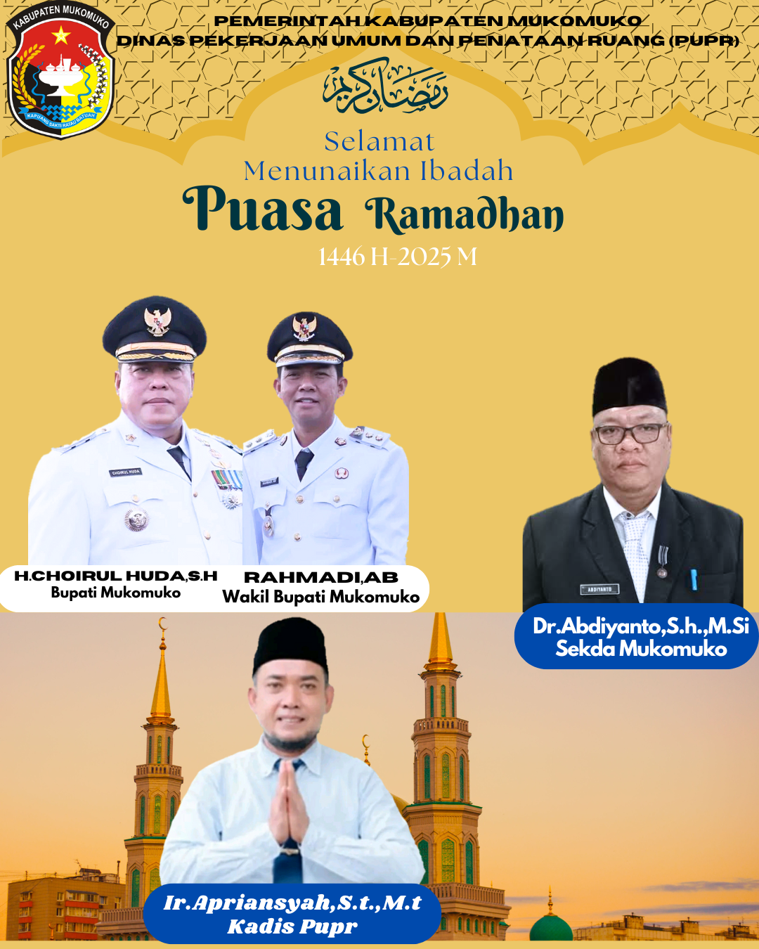 Kompas86.com -Pemerintah kabupaten mukomuko melalui dinas pekerjaan umum dan penataan ruang (PUPR) mengajak seluruh aparatur sipil negara (ASN) dilingkungan Dinas Pupr agar menunaikan ibadah puasa ramadhan 1446 Hijriah.