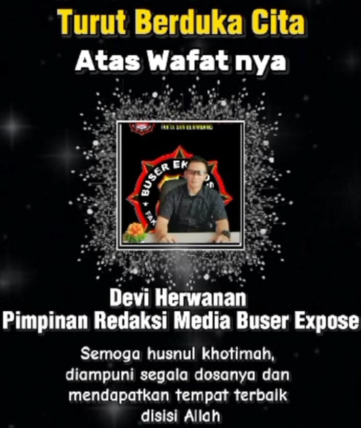 Bandung ( Jawa Barat ) kompas86.com__, Dunia jurnalis kembali berduka setelah Pimpinan Redaksi media Buser Ekspos Devi Hermawan menghembuskan nafas terakhir pada hari Jumat (10/01/2025) akibat penyakit yang dideritanya.