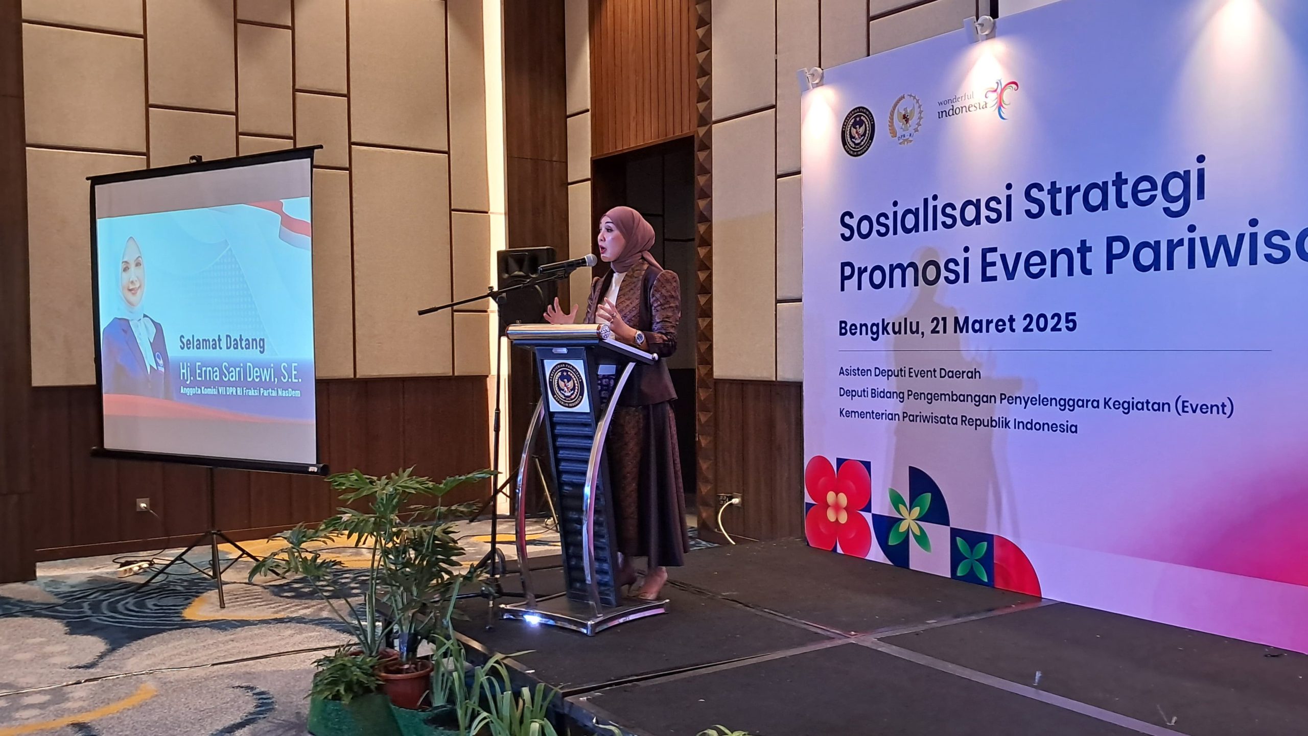 Kompas86.com-Anggota Dewan Perwakilan Rakyat Republik Indonesia (DPR RI) Erna Sari Dewi Dapil Bengkulu menggelar sosialisasi Event Pariwisata bersama Kementerian Pariwisata Republik Indonesia di Provinsi Bengkulu pada kamis siang (20/03/2025).