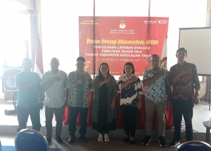 Komisi Pemilihan Umum (KPU) Kabupaten Kepulauan Tanimbar (KKT) menggelar Focus Group Discussion (FGD) Penyusunan Laporan Evaluasi Pemilihan Tahun 2024 pada hari kedua sekaligus hari terakhir. Kegiatan yang berlangsung di Vila Bukit Indah, Saumlaki, ini bertujuan untuk menyerap aspirasi untuk mengevaluasi pelaksanaan pemilu guna menghasilkan pilkada yang berkualitas.