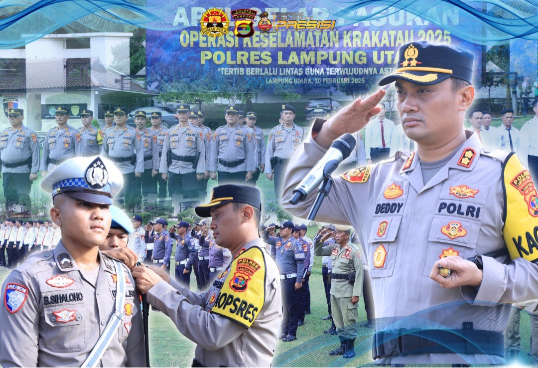 Lampung Utara,Kompas86.Com Polres Lampung Utara menggelar Apel Gelar Pasukan Operasi Keselamatan Krakatau 2025, di halaman apel Mapolres Lampung Utara. Apel tersebut dipimpin langsung oleh Kapolres Lampung Utara, AKBP Deddy Kurniawan, dan dihadiri oleh berbagai pejabat daerah dan instansi terkait, termasuk Pj. Bupati Lampung Utara, Drs. Aswarodi, M.Si, Ketua DPRD Kabupaten Lampung Utara, M. Yusrizal, ST, serta kepala dinas dan perwakilan TNI. Senin, 10/02/2025.