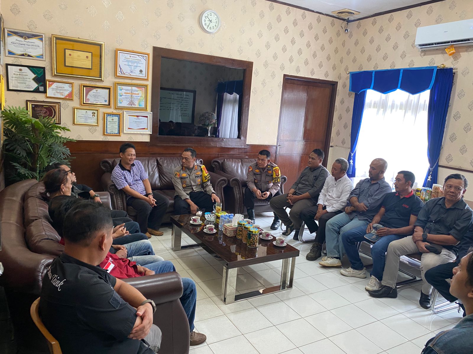 Lampung Utara,Kompas86.Com Kapolres Lampung Utara AKBP Deddy Kurniawan SH.S,I.K,.M.M.M.Si di dampingi Kepala Bagian Operasional (Kabag OPS) Polres Lampung Utara Kompol Firmansyah menerima audensi Persatuan Wartawan Duta Pena Indonesia (PWDPI) Kabupaten Lampung Utara, Rabu (22/01/2025).