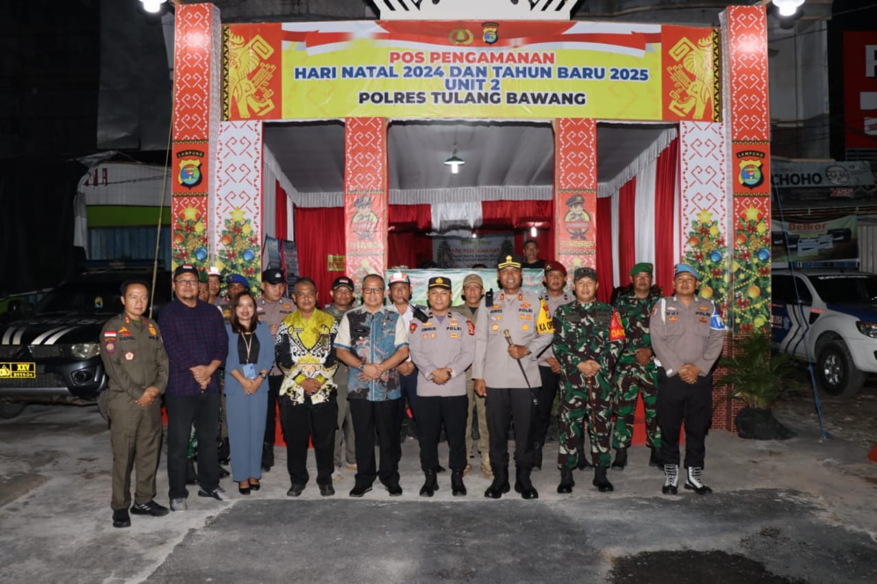 Tulang bawang,Kompas86.Com Kapolres Tulang Bawang, Polda Lampung, AKBP James H Hutajulu, SIK, SH, MH, MIK, bersama Pj. Bupati Tulang Bawang dan Forkopimda melakukan monitoring situasi dan mobilitas masyarakat pada malam Natal 2024 dengan mengunjungi tiga Pos Operasi Lilin Krakatau 2024.
