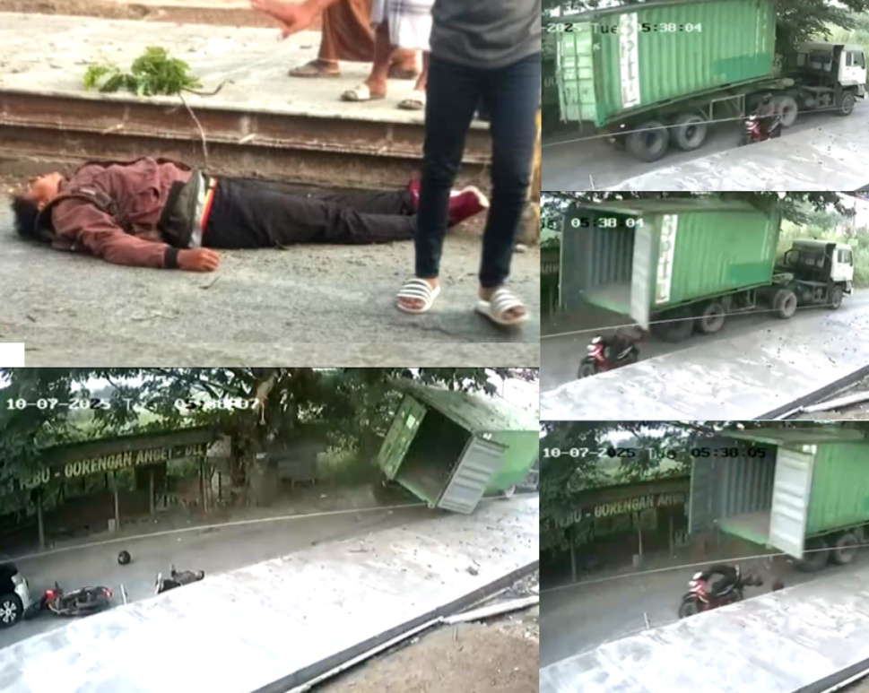 Kecelakaan Tragis di Jalan Morowudi Kulon: Pintu Petikemas 20 Feet Hantam Kepala Pengendara Motor, Diduga Akibat Kelalaian Pengemudi Trailer