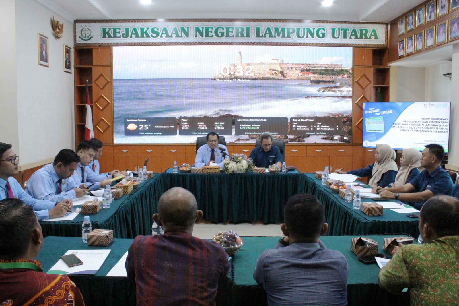Forum ini dihadiri oleh Kepala Kejaksaan Negeri Lampung Utara, Hendra Syarbaini, S.H., M.H., selaku Ketua Forum; Kepala BPJS Kesehatan Cabang Lampung Utara, Wahyu Santoso; Kepala Dinas Penanaman Modal dan Pelayanan Terpadu Satu Pintu Kabupaten Lampung Utara; Kepala Dinas Koperasi, UMKM dan Tenaga Kerja Kabupaten Lampung Utara; Kepala Dinas Pemberdayaan Masyarakat dan Desa Kabupaten Lampung Utara; Kepala Badan Pengelolaan Keuangan dan Aset Daerah (BPKAD) Kabupaten Lampung Utara; serta Jaksa Pengacara Negara (JPN) Kejaksaan Negeri Lampung Utara.