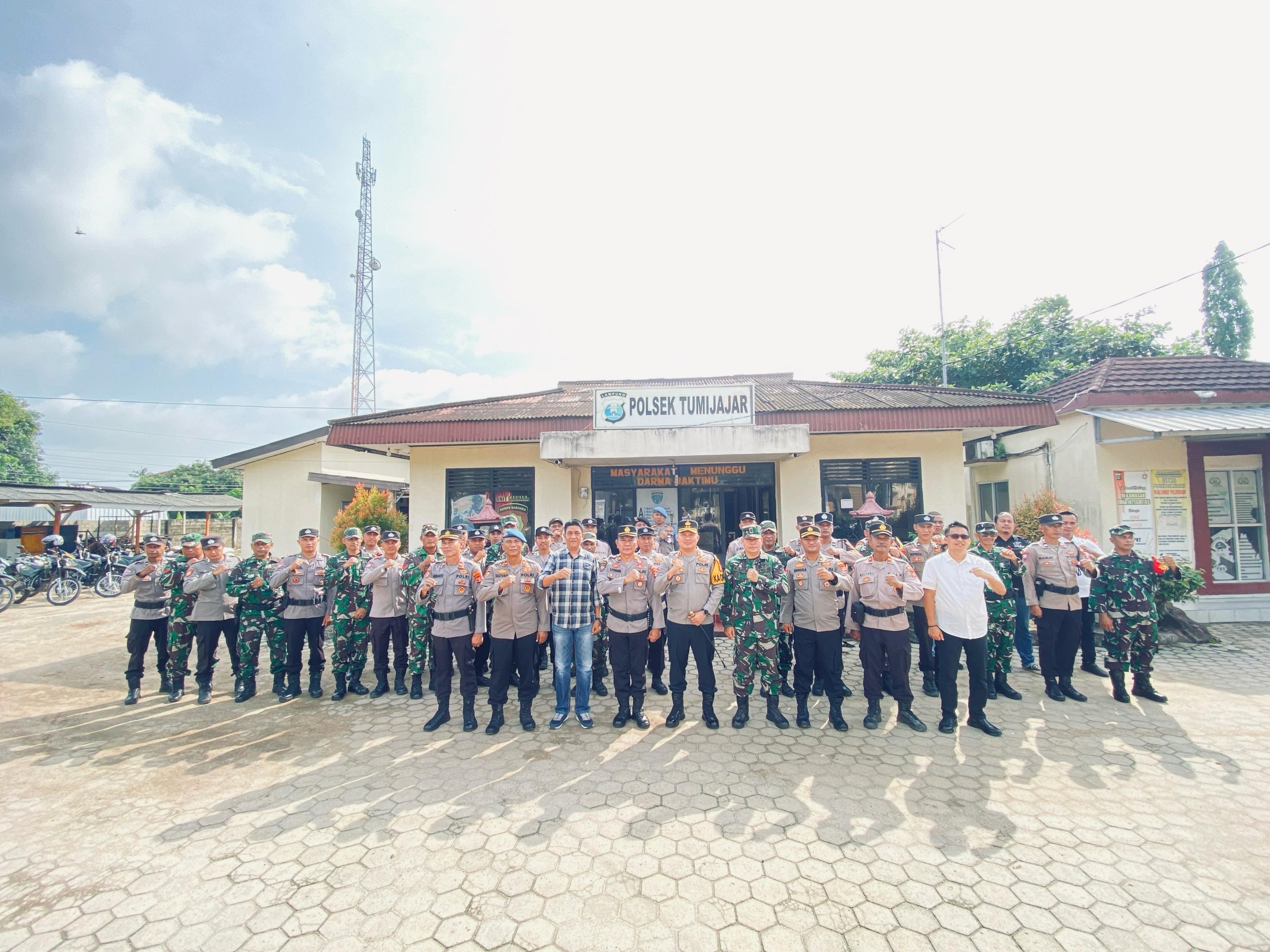 Tulang Bawang Barat,Kompas86.Com Personel Polsek Tumijajar dan Koramil 0412/05 Tumijajar membaur menjadi satu dalam Apel Sinergitas di halaman Mapolsek Tumijajar, Rabu (19/03/2025).