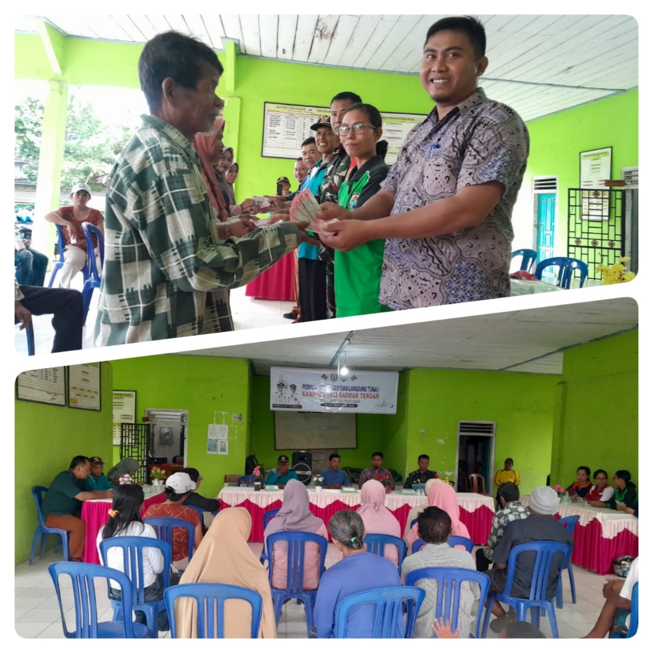 Nyoman Dirge selaku Kepala Kampung Bali Sadhar Tengah melalui Sekdes (Carik) nya Made Yudi Salurkan BLT-DD tersebut di dampingi Ketua BPK dan Anggota,Pendamping Lokal Desa,Sekcam Kecamatan Banjit,Bhabinsa Dan Seluruh Aparatur Kampung Bali Sadhar Tengah.