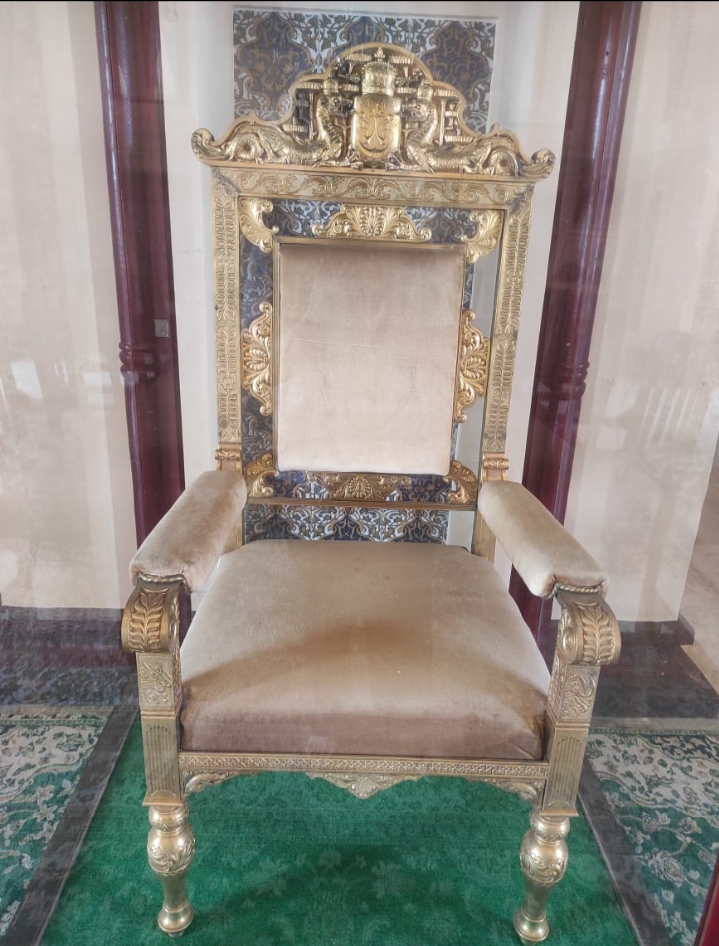 Ketika kita memasuki ruangan bagian kanan di dalam Istana kita akan melihat sebuah kursi ke emasan yang penuh dengan ukiran yang indah nan menawan terbuat dari kuningan berlapiskan Emas yang di gunakan Sultan pada saat memerintah dan masa kerajaannya. Dahulu kursi singgasana ini pernah dibawa ke museum Nasional di jakarta namun saat ini telah balik berada di dalam istana Siak dengan daya kharismatik sangat asyik bagi pengunjungnya. Mahkota kerajaan yang asyik penuh pesona merupakan berasal dari mahkota keluarga Kesultanan kerajaan Siak Sri Indrapura yang terbuat dari Emas dan di hiasi oleh permata berlian dan mirah yang bermotifkan filigri dengan berbagai permak permiknya menawan . Terlihat juga peninggalan lemari besi brankas kerajaan Siak yang penuh historis tersendiri ,yang mana tak bisa dibuka oleh siapapun,untuk melihat isinya konon tak ada yang sanggup buka, ungkap warga setempat .Lemari besi brankas kerajaan itu penuh misteri dan cukup fenomenal belum terpecahkan apa isinya belum tau didalam hingga kini tak bisa di buka oleh siapapun isinya penuh misteri tak pernah dilihat mulai dahulu hingga kini karena lemari tersebut sangat ajaib tutur warga setempat .
