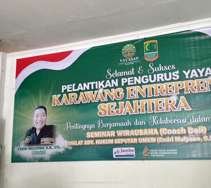 Pelantikan Yayasan Karawang Enterpreneur Sejahtera (KERSA) berlangsung pada Minggu, 16 Februari 2025, di Gedung Eks Samsat, Jl. Tuparev, Johar, Karawang. Acara ini dihadiri oleh H. Budiwanto, anggota Dewan Provinsi Jawa Barat Komisi 2 dari PKS, Coach Deli selaku Ketua Genpro 3 Padjajaran, serta Endri Mulyono, S.H., advokat kuasa hukum.