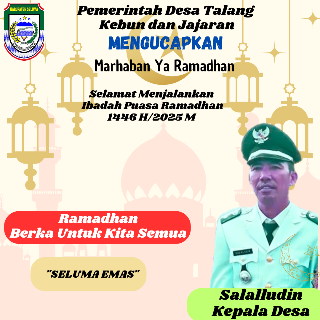 Kepala Desa Talang kebun Sallaudin mengatakan,Atas nama pemerintahan dan BPD mengajak kepada semua warga Talang kebun agar menjalankan ibadah puasa ramadhan 1446 hijriah/2025 Masehi.