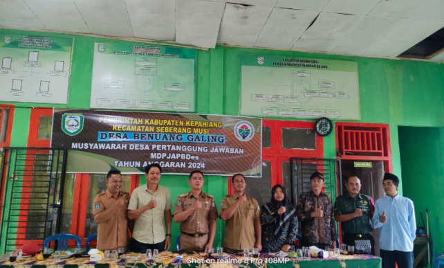 Pemerintah Desa Benuang Galing, Kecamatan Seberang Musi, Kabupaten Kepahiang, menggelar Musyawarah Desa Pertanggungjawaban MDP JAPBDes Tahun Anggaran 2024. Kegiatan ini dilaksanakan di Balai Desa dan dibuka langsung oleh Kepala Desa Benuang Galing.