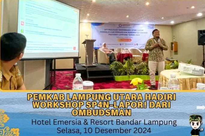Bandar Lampung,Kompas86.Com Ombudsman menggelar Workshop mengenai Optimalisasi Governansi SP4N Lapor! Pengelolaan Pengaduan Pemerintah Daerah Provinsi Lampung Tahun 2024 yang diselenggarakan di Hotel Emersia & Resort, Bandar Lampung.(10/12/2024)