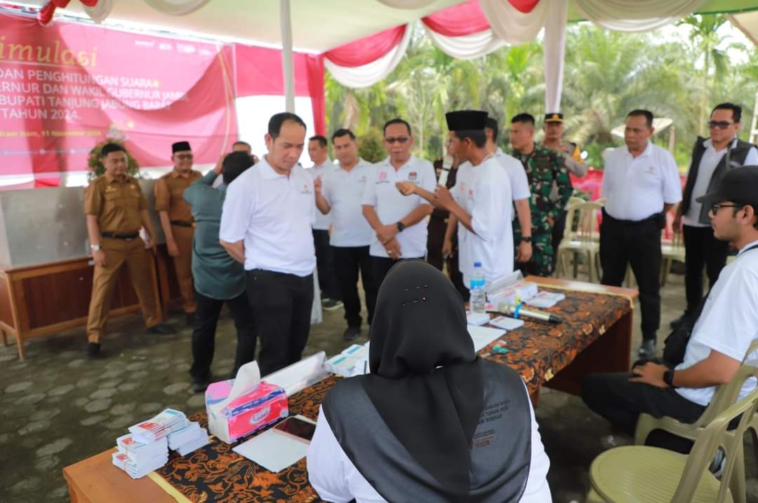 Pjs. Bupati Tanjab Barat, dr. Fery Kusnadi, dalam sambutannya menyampaikan harapan agar simulasi ini berjalan dengan lancar dan tingkat partisipasi masyarakat dalam pemilihan dapat mencapai 90%. Ia juga mengimbau masyarakat untuk menjaga kondusivitas selama berlangsungnya pilkada, dan menghindari praktik kampanye hitam.