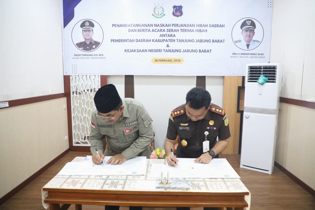Kuala Tungkal – Dalam upaya memperkuat sinergi antara Pemerintah Kabupaten Tanjung Jabung Barat dan Kejaksaan Negeri (Kejari), Bupati Tanjung Jabung Barat, Drs. H. Anwar Sadat, M.Ag secara resmi menyerahkan hibah kantor Kejari yang berada di Desa Pembengis melalui penandatanganan Naskah Perjanjian Hibah Daerah (NPHD) dan Berita Acara Serah Terima Hibah, yang berlangsung di Aula kantor Kejari Tanjung Jabung Barat, Senin (10/2).