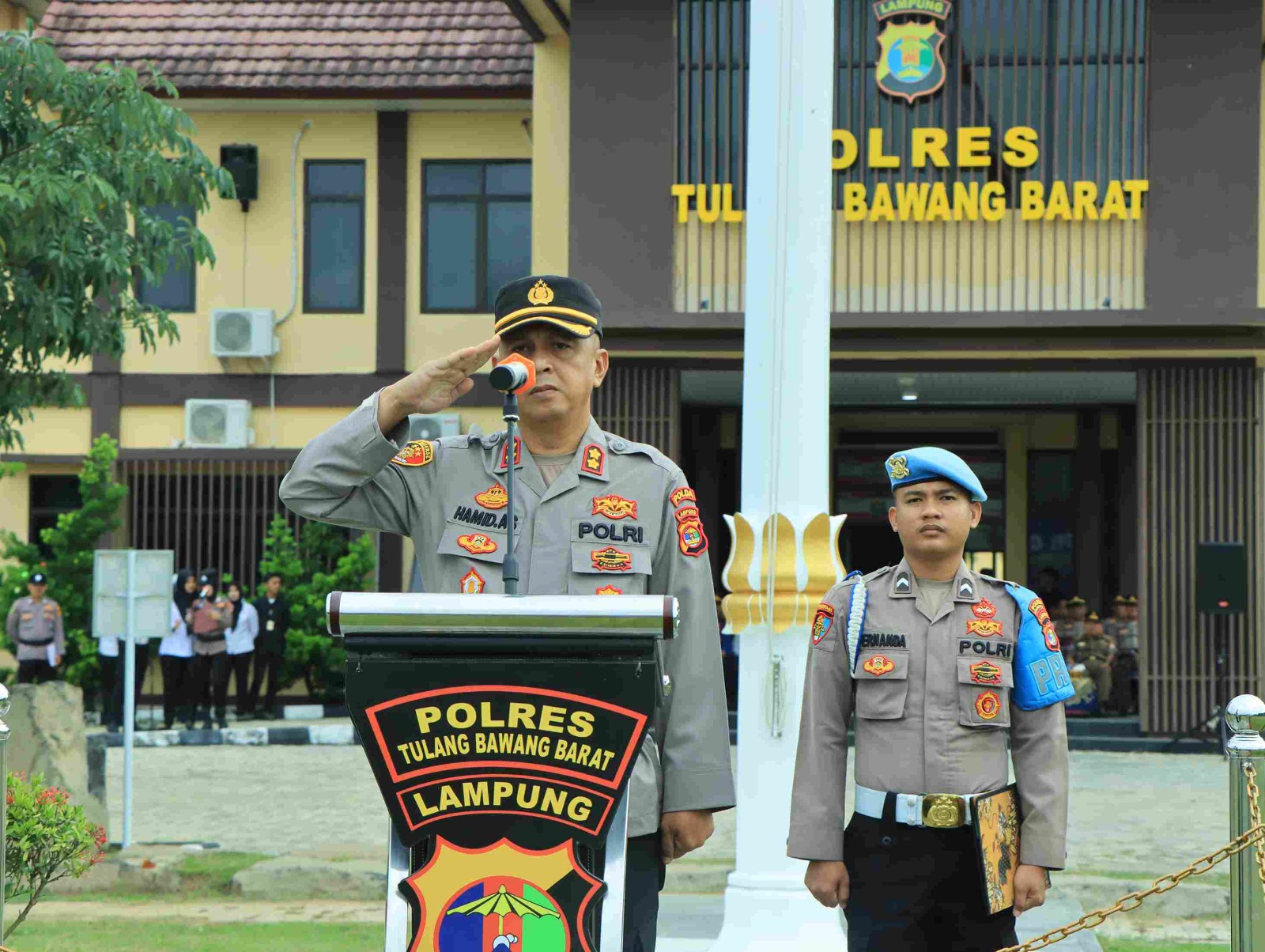 Tulang Bawang Barat,Kompas86.Com Plh Kapolres Tulang Bawang Barat PLH.Kapolres AKBP Hamid Andri Soemantri.S.I.K.M.M. pimpin Apel Gelar Pasukan Operasi Keselamatan Krakatau 2025 di halaman Upacara Mapolres Tubaba, Senin (10/02/2025) Pagi
