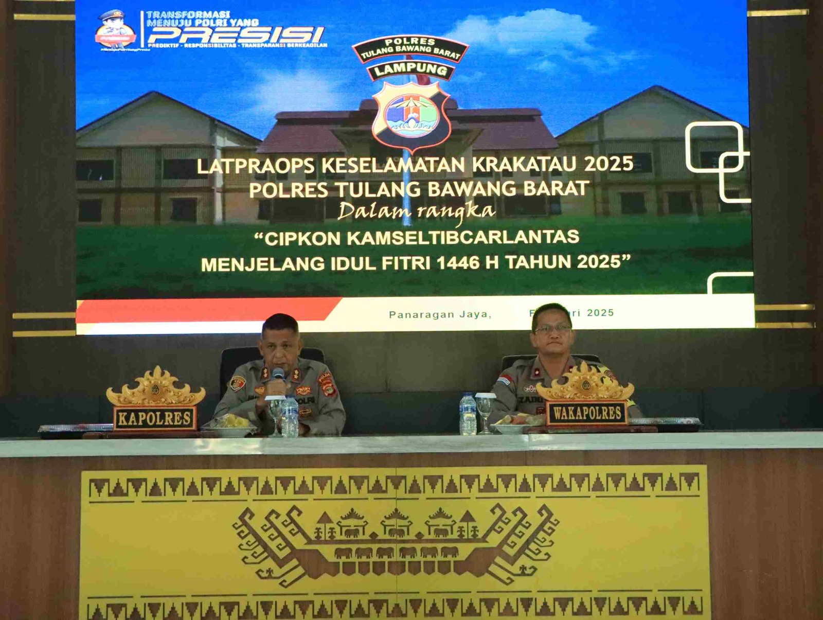 “Operasi Keselamatan Krakatau 2025 ini akan berlangsung selama 14 hari, terhitung dari tanggal 10 Februari hingga 23 Februari 2025 dengan sasaran operasi meliputi segala bentuk potensi gangguan, ambang gangguan dan gangguan nyata yang berpotensi menyebabkan kemacetan dan laka lantas baik sebelum, pada saat maupun pasca operasi keselamatan Krakatau-2025.” Kata Plh Kapolres Tubaba.