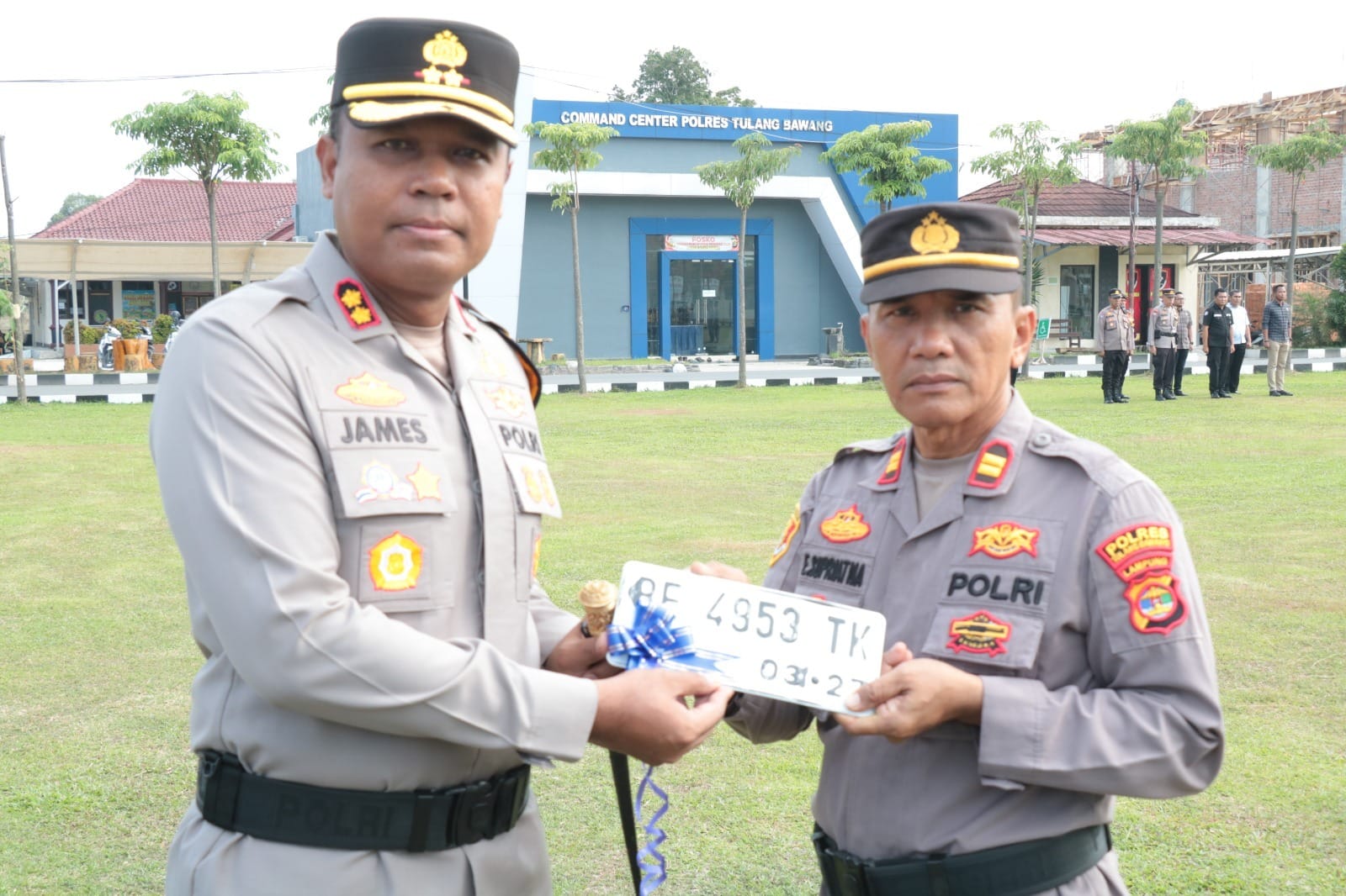 Terobosan kreatif yang dimaksud berupa Tanda Nomor Kendaraan Bermotor (TNKB) Delivery, yang secara simbolis diserahkan langsung oleh Kapolres Tulang Bawang, AKBP James H Hutajulu, SIK, SH, MH, MIK, hari Selasa (22/10/2024), pukul 08.00 WIB, di lapangan Mapolres setempat.