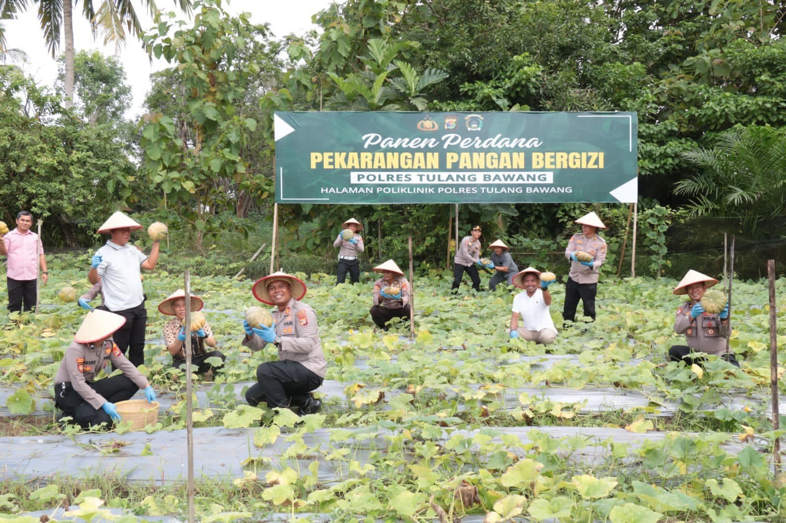 “Hari ini, saya bersama Plh.Wakapolres, Ketua FKUB Tulang Bawang, PJU Polres, personel Polres dan pengurus Bhayangkari Cabang Tulang Bawang, melaksanakan panen perdana di pekarangan pangan bergizi (P2B) yang berada di halaman Poliklinik Polres Tulang Bawang,” ucap perwira peraih Adhi Makayasa Akpol 2004.