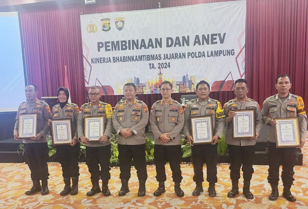 Piagam penghargaan tersebut diserahkan secara langsung oleh Direktur Pembinaan Masyarakat (Dir Binmas) Polda Lampung, Kombes Pol Anang Triarsono, SIK, M.Si, yang dihadiri oleh para Kasat Binmas Polres dan Bhabinkamtibmas jajaran.