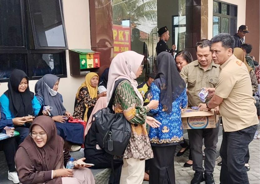 Lampung Tengah-Kompas86.com Sat Intelkam Polres Lampung Tengah, Polda Lampung bagikan air mineral ke ratusan warga pemohon surat keterangan catatan kepolisian (SKCK), Rabu (17/9/25).