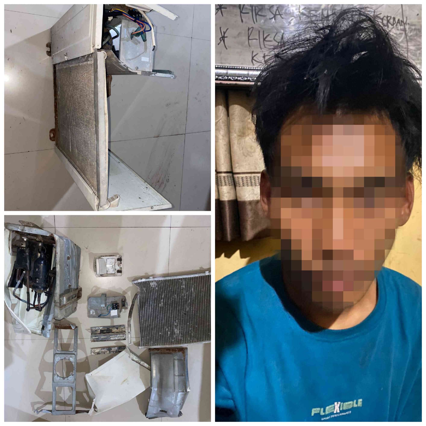 Setelah berhasil masuk, pelaku memindahkan 2 unit compressor Blower AC ke luar pagar, namun belum sempat melarikan diri karena aksinya diketahui oleh dua orang saksi Petugas Satpam segera menghubungi pihak kepolisian dan bersama-sama mengamankan pelaku dan barang bukti.