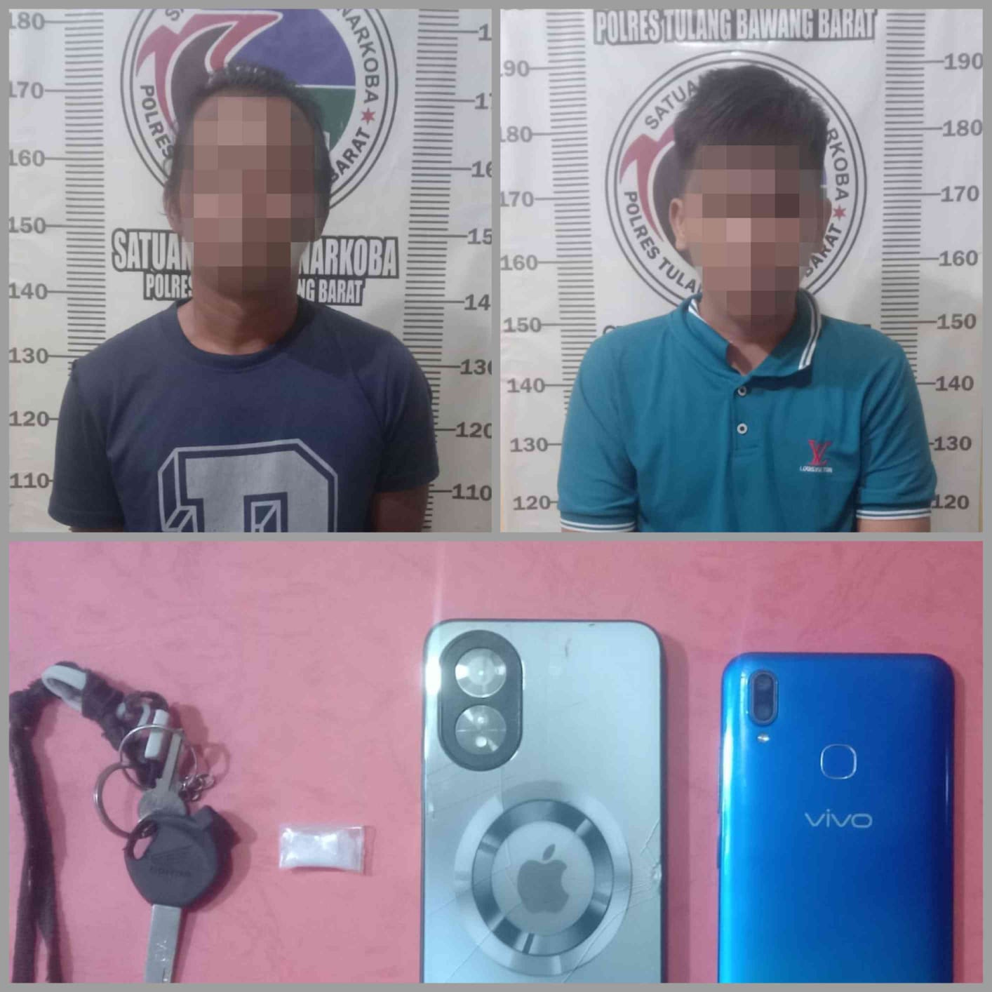 Tulang Bawang Barat-Kompas86.com Satuan Reserse Narkoba (Satresnarkoba) Polres Tulang Bawang Barat, Polda Lampung berhasil mengamankan dua orang laki-laki yang diduga terlibat dalam penyalahgunaan narkotika jenis sabu. Penangkapan berlangsung pada hari Kamis, Tanggal 31 Juli 2025, sekira pukul 17.30 WIB, di Jalan Poros Tiyuh Way Sido, Kecamatan Tulang Bawang Udik, Kabupaten Tulang Bawang Barat.