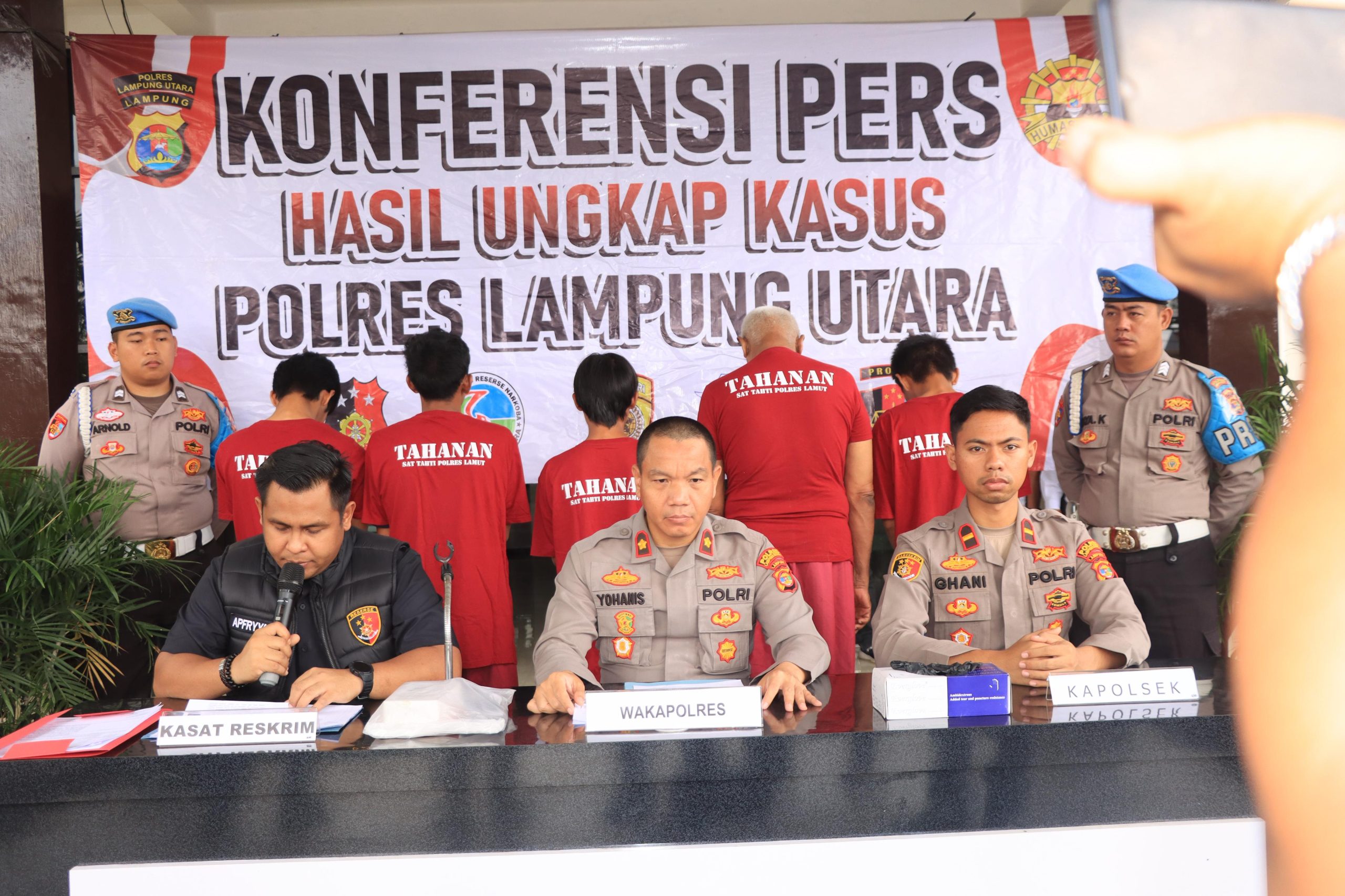 Hal tersebut disampaikan oleh Kapolres Lampung Utara melalui Waka Polres Kompol Yohanis didampingi Kasat Reskrim AKP Apfryyadi Pratama saat menggelar Konferensi Pers di Mapolres setempat, Kamis (12/6/25).