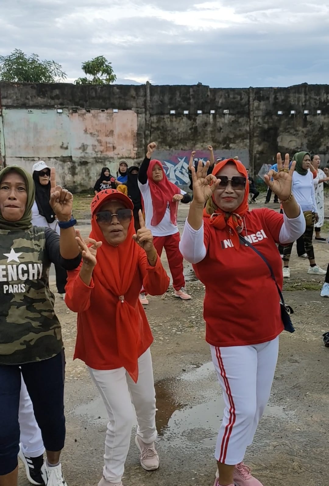 Peserta senam didominasi oleh emak-emak dan warga setempat yang antusias mengikuti setiap gerakan. Cuaca cerah turut memeriahkan suasana, dengan teriakan gembira dan tawa yang menggema di lokasi acara.