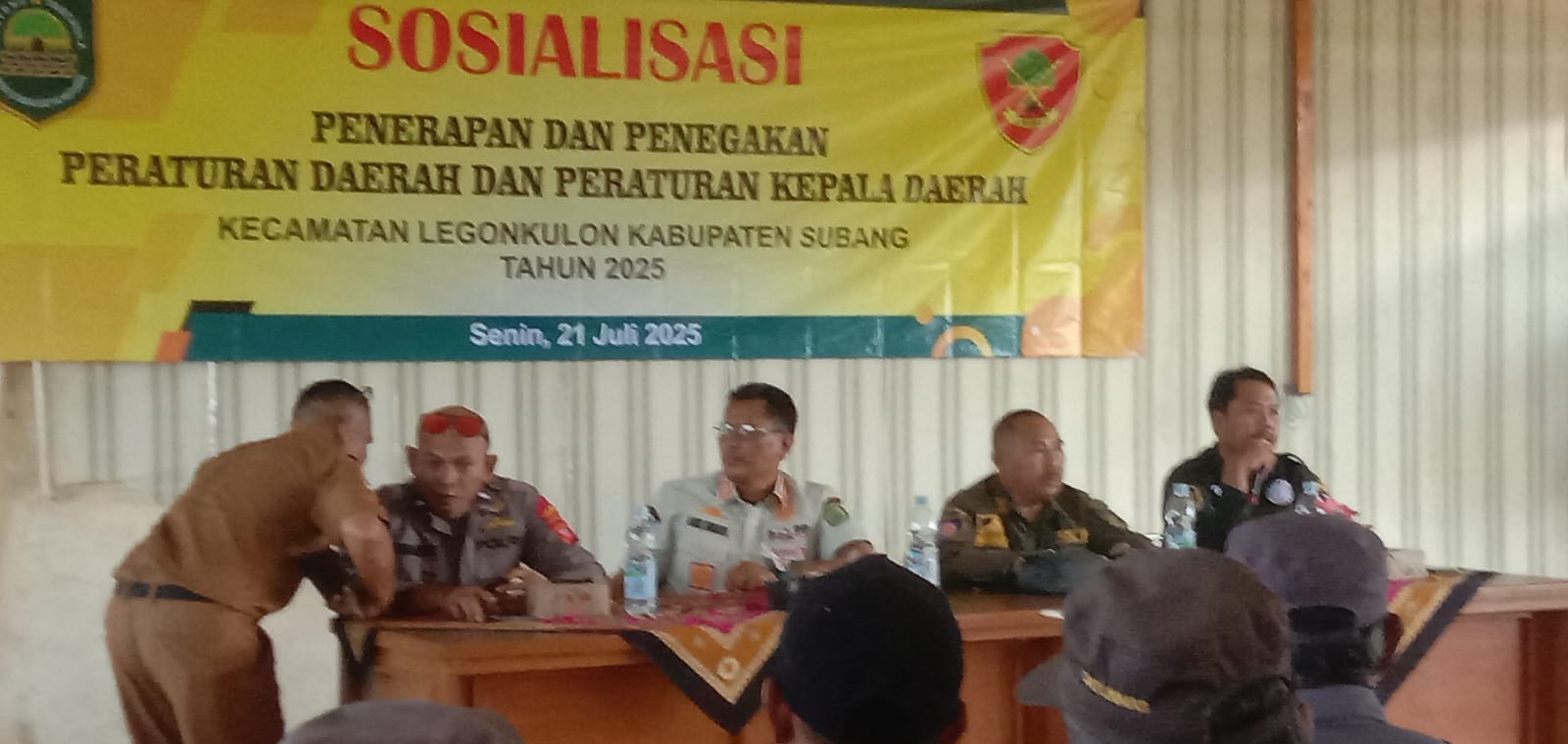 KOMPAS86.COM | Subang – Pemerintah Kecamatan Legon Kulon menggelar kegiatan Sosialisasi Penerapan dan Penegakan Peraturan Daerah (Perda) serta Peraturan Kepala Daerah (Perkada) yang bertempat di Aula Kantor Kecamatan Legon Kulon, Kabupaten Subang, Senin (21/07/25).