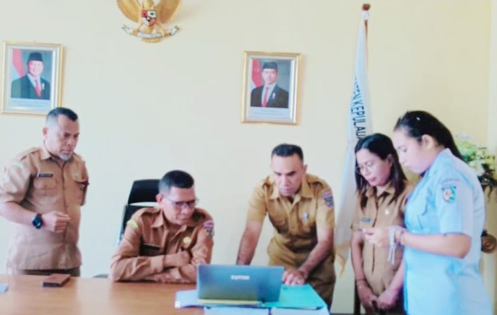 Kepala Bidang E-Government Dinas Kominfo Kabupaten Kepulauan Tanimbar, Ernes Falikres, ST., bersama tim TTE mengunjungi Pj. Sekretaris Daerah dengan tujuan untuk melaporkan progres kerja program TTE yang telah dilaksanakan oleh Dinas Kominfo Kabupaten sekaligus memberikan sosialisasi cara penggunaan TTE kepada Pj. Sekretaris Daerah di ruang kerjanya, bertempat di Lantai 3 Kantor Bupati Kepulauan Tanimbar. Selasa ( 11/03 )