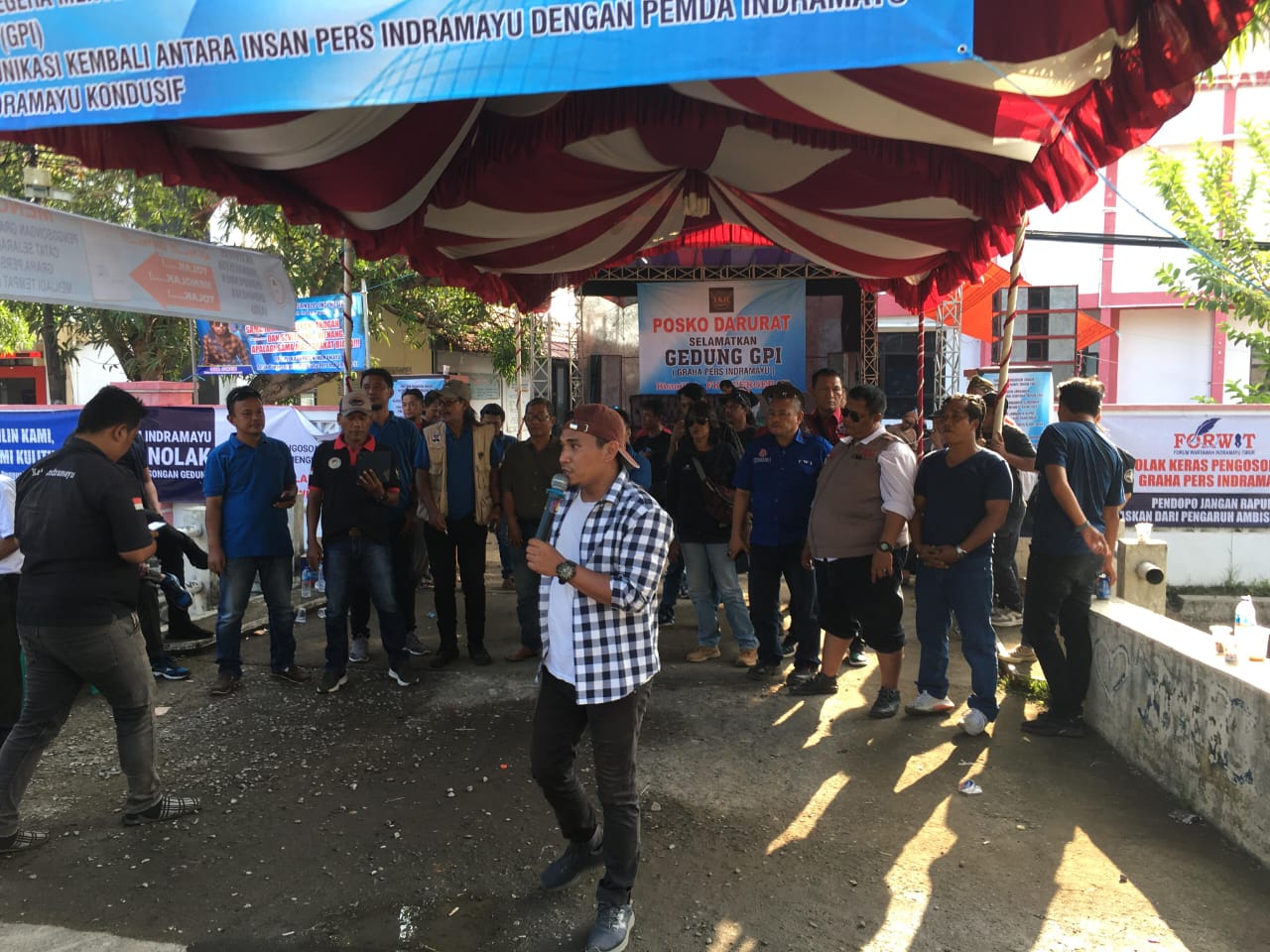 “Kalau Gedung GPI dikosongkan atau kami diusir, jadi kami akan berkantor di depan Gedung Pendopo Indramayu.”