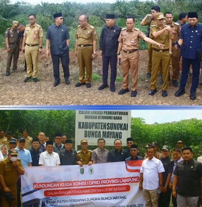 Sungkai Jaya,Kompas86.Com Wakil Bupati Lampung Utara, Romli,S.Kom.,S.H.,M.H., didampingi oleh Sekretaris Daerah Kabupaten Lampung Utara, Drs.H.Lekok, M.M., serta Asisten I Setdakab Lampung Utara, Man Kodri,S.H.,M.M.,CPIA, menerima kunjungan kerja Komisi I DPRD Provinsi Lampung dalam rangka peninjauan lokasi calon Daerah Otonomi Baru (DOB) Sungkai Bunga Mayang, yang terletak di wilayah Kecamatan Sungkai Jaya dan sekitarnya.(22/4/25)
