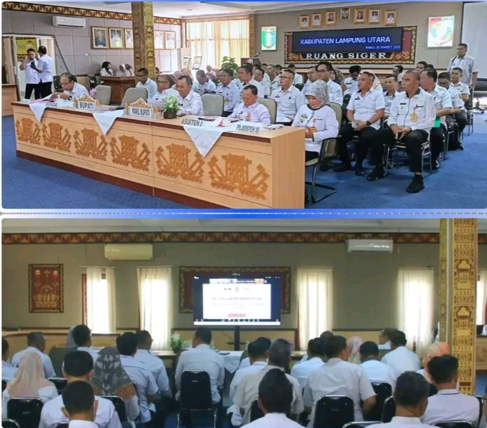 “Acara ini juga dihadiri oleh Sekretaris Daerah Kabupaten Lampung Utara, Drs.H. Lekok,M.M., para Asisten, Staf Ahli, serta Kepala OPD beserta Inputer MCP Perangkat Daerah.