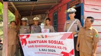 SATLANTAS POLRES PALI SALURKAN 50 PAKET SEMBAKO UNTUK WARGA DESA SIMPANG TAIS