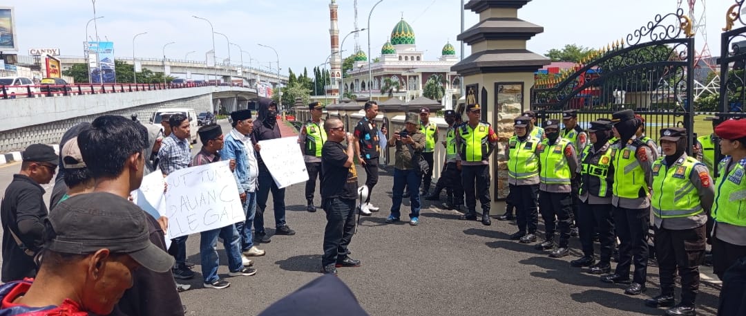 Puluhan Masa Aliansi Gerakan Tuntutan Rakyat Peduli Lingkungan Dan Keadilan Sosial Datangi Polda Sumsel Menuntut Kapolda menertibkan Galian C Diduga Ilegal Di Regional 1 Palembang -Banyuasin