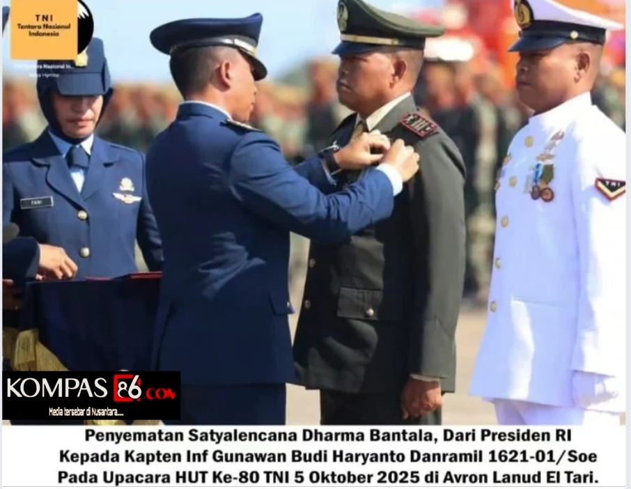 Kapten Inf Gunawan Budi Haryanto Terima Satya Lencana Dharma Bantala 30 Tahun dari Presiden Prabowo